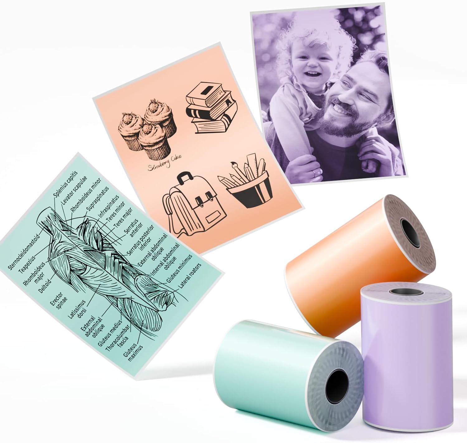 Phomemo 1.96'' Mixed Color Sticker Paper for T02/M02S/M02 PRO Mini Printers - Green, Purple, Orange