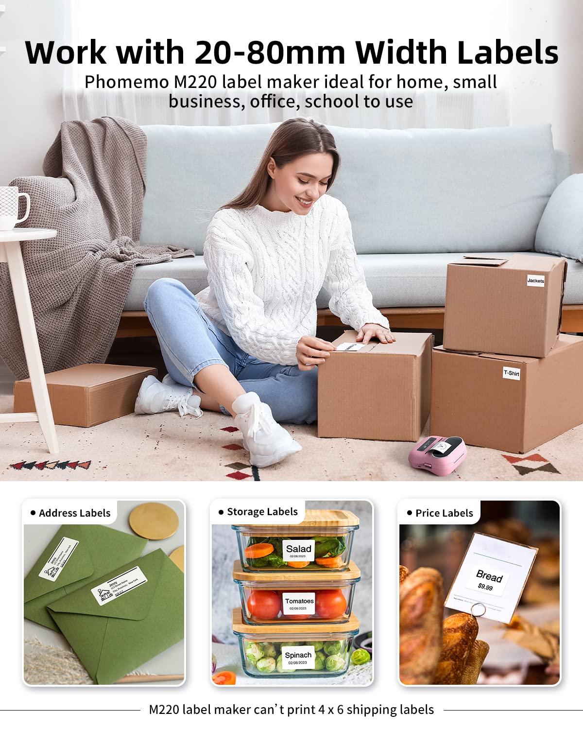 The M220 delivers high-definition printing and fast performance, making it ideal for businesses and offices that need to print product labels, price tags, address labels, and more. The Print Master APP offers a wide variety of label templates for quick and easy printing in various scenarios.